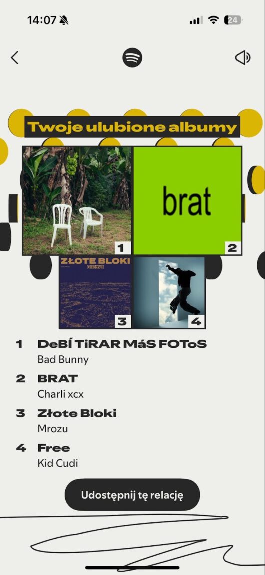 - Udostępnialność trzeba zaprojektować – nie jest przypadkowa. Wrapped jest zoptymalizowany pod kątem viralowości od projektowania grafik po timing kampanii
