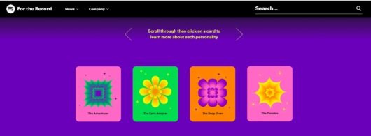 Spotify nie jest w ciemię bite (jak mawia moja mama) i wyciągnęło wnioski. Kampania przeszła metamorfozę. Zamiast nudnych zestawień pojawiły się żywe kolory, animacje i … interaktywne historie. Oj tak. Bo ludzie kochają opowiadać o sobie, a czy można lepiej o sobie opowiedzieć, niż przez coś, co jest częścią naszej tożsamości? Ofc chodzi o muzykę.