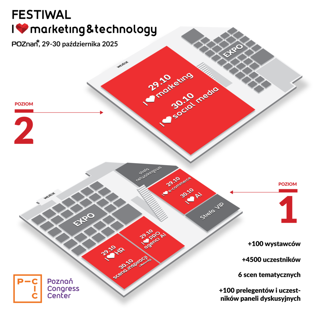 Pierwszy raz w Polsce wprowadzamy nowy, innowacyjny układ sceny! Zobaczycie ją na ścieżkach I ❤️ Marketing oraz I ❤️ Social Media